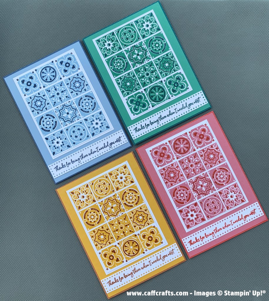 Well after spending the last couple of weeks making the Box of cards using the Prized Peony set, I’m totally ‘Peony’d’ out so I decided to have a play with the Today’s Tiles stamp set and dies.